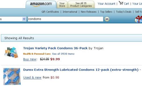 Ok, so we all remember when Amazon started selling sex toys. Now, logic would follow that they also sell condoms.